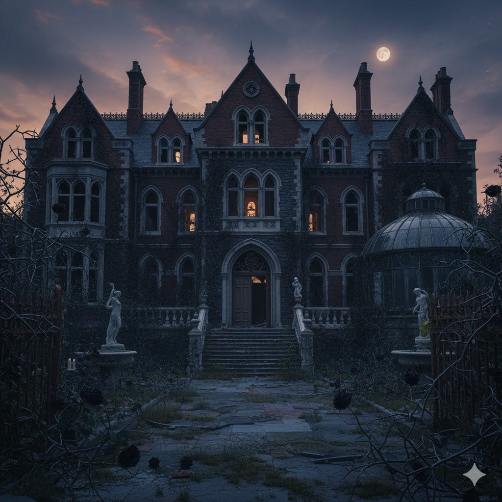 When they had dinner that evening, one of the waitresses whispered to them that the hall was haunted, and many people stayed away. That the gardens were choked with weeds and thorns, and no one went up to the hall/hotel at all.